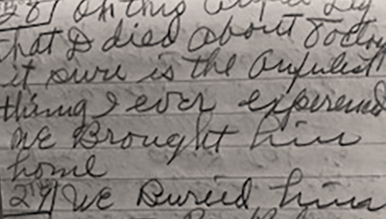 Granddaddy D was gone, but the work had to go on. Their son Tal, age 20, began the firing. Mama Eliza and her daughters hauled hickory slabs for him. On October 12, she wrote: This is D’s birthday he would of Been 50 if he had Lived untill today.