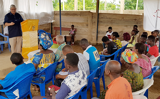 IM’s partnership with the Association of Free Will Baptist churches in Ivory Coast allows us to plant churches like this one that are reaching the lost. The Bible Institute we help support in Ivory Coast trains pastors like Emmanuel, who was able to answer Aka’s many questions. The Tiassalé FWB church is in a building project. The walls are up, but they don’t have money to finish the roof (pictured above). The Ivory Coast partnership is providing the funds so they will have a place to worship. (They are currently worshiping under a makeshift shelter.)