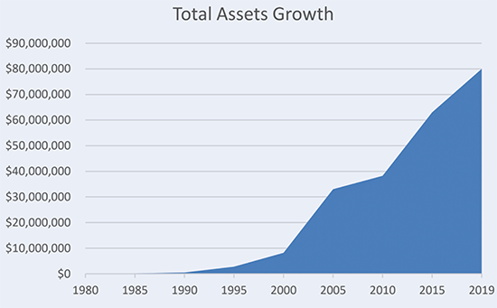 Estate planning and a grant program also have been added to the ministry of the Foundation. On June 30, 2019, the total assets of the Foundation exceeded $80 million for the first time. The chart above illustrates the progress the Foundation has made over the decades. It has been a remarkable run for the last 39 years. We give all glory to God for His blessings and thank Him for the ministry made possible by these funds.