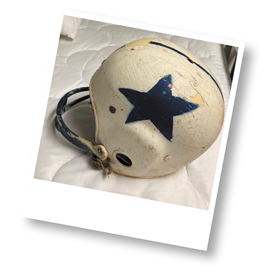 Press on. I turned seven the September before the Cowboys won their first Super Bowl. One of my most prized birthday gifts was a white football helmet [pictured above] with a blue Dallas Cowboy’s star painted on it. Looking back, I was a die-hard Cowboy’s fan, even before they won their first championship.