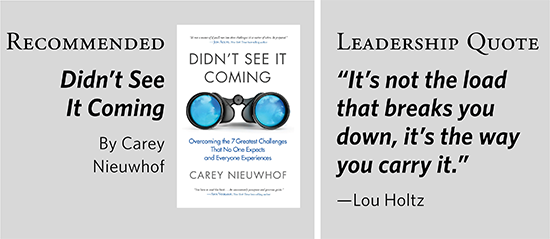 The column "Leadership Whiteboard" provides a short visual leadership coaching moment. It introduces and explains a new sketch in each issue, provides leadership coaching for further development, and shares a leadership quote and recommended book.