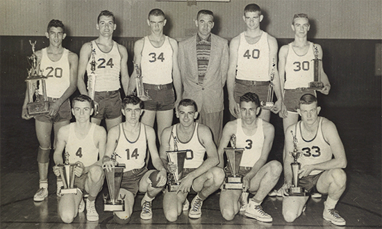 During basketball season, each week began for the players with a three-hour practice Monday night. We would run 40 laps on the gymnasium bleachers, followed by push-ups, position shooting, and wind sprints. Larry often ran beside me. His shoes were ragged from hard use. The pace never slowed. Game nights were typically Tuesday and Thursday, and weekend tournaments usually included three or more games. When the team played “away” games, we usually rode in cars or on a school bus, arriving back at Forest between nine and eleven o’clock.