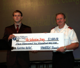 PHOTO CAPTION: Gerald Turner, FWBBC student body president, presents check to Major Ron Raymer.