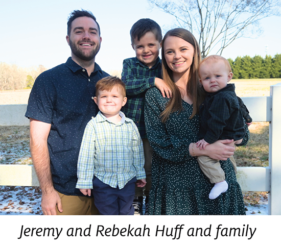The Huffs are graduates of Southeastern Free Will Baptist College. Since 2019, they have been actively ministering at Great Bridge FWB Church in Chesapeake, Virginia, where Jeremy served as the student pastor and worship leader and Rebekah as the children’s ministry director. The couple also taught and worked in the church’s associated school, Great Bridge Christian Academy.