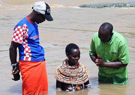 Kenya—On July 21, 2021, Samburu Christians in Sesia (below) celebrated new life in Christ through baptism. While waiting on everyone to arrive and head to the river, one of the Samburu leaders led a man to the Lord.