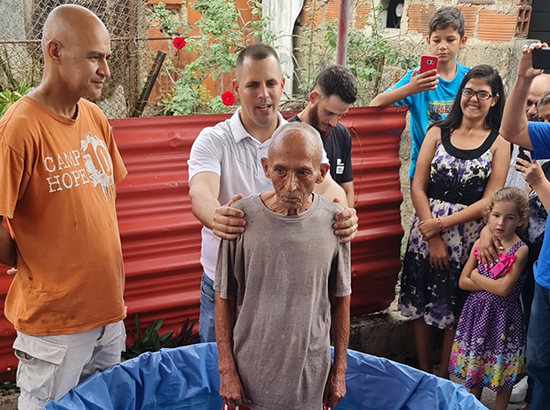 Uruguay—January 29, Pastor Ismael de Olivera baptized three new believers (above) at the Cristo es el Camino FWB Church in Rivera, Uruguay.