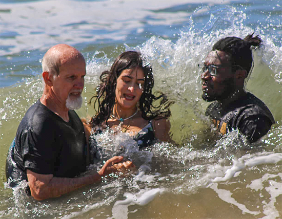 Dennis Teague baptized Lilou in the Atlantic Ocean.