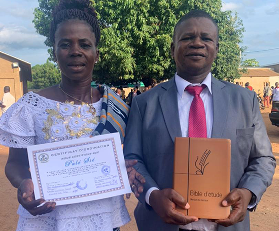 Côte d’Ivoire: The National Association of Free Will Baptist Churches of Côte d’Ivoire met in Doropo August 14-16. Present were association officers, visitors, and 115 standing delegates and church delegates. During the proceedings, Sié Laurent Palé, pastor of the Tchafrité FWB Church, was ordained to the gospel ministry. (photo below)
