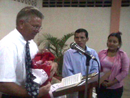 Chitré, Panama Cirilio and Kathia, new Panamanian converts, asked missionary Stan Bunch to officiate the dedication of their baby boy to the Lord, side-stepping the traditional Catholic baptism. The dedication took place April 23. Stan noted this decision was a major step of faith for the young Christian couple.