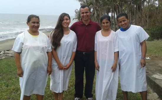 Panama—Efraín González, pastor of Las Tablas Church in Panama, baptized four people June 28 (below).