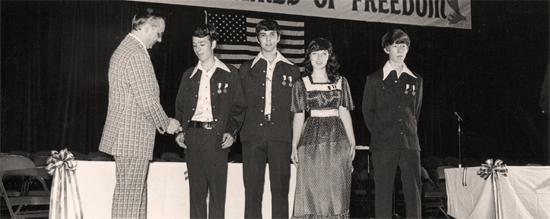 Malcolm was a denominational leader in developing church training materials and Sunday School curriculum, and a highly regarded meeting planner whose innovative ideas for competitive activities launched a growth surge in the Free Will Baptist National Youth Conference that today attracts 3,000 attendees each July. (Show below presenting an award to the Bible Bowl team from Illinois in 1976.)