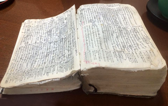 We’ve all heard the maxim: “A Bible that is falling apart is usually carried by a person who isn’t.” Mr. Kazama is the perfect example. His Bible (pictured below) is literally in pieces, though he has patched and taped it many times. Every page contains underlining and every margin filled with notes. From the moment he discovered his wife’s body, he began to call on His Lord for strength. By the morning after, he had begun a list of things for which to be thankful in Mitsue’s passing. He showed us 17 items he had already listed.