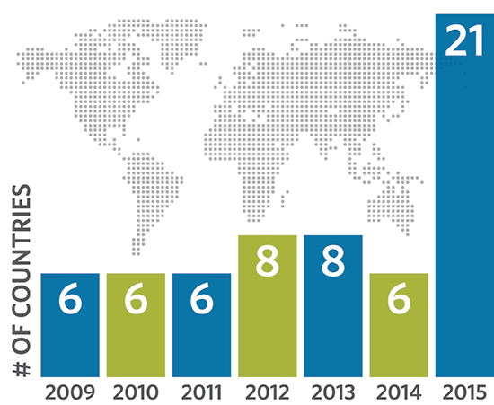 The D6 Conference has attracted international leaders from year one. When people discover God’s heartbeat in His commands in Deuteronomy 6 then discern how to live out those commands relationally, passing along passionate worship of Christ to all generations in all places becomes vital. Beginning in 2009, people heard about ministry leaders gathering in Dallas because they care about the healthy revitalization of the church through family ministry. Randall House promoted this event in the States but the message also spread globally. From 2009 to 2015 the number of attendees from other countries continued to grow: